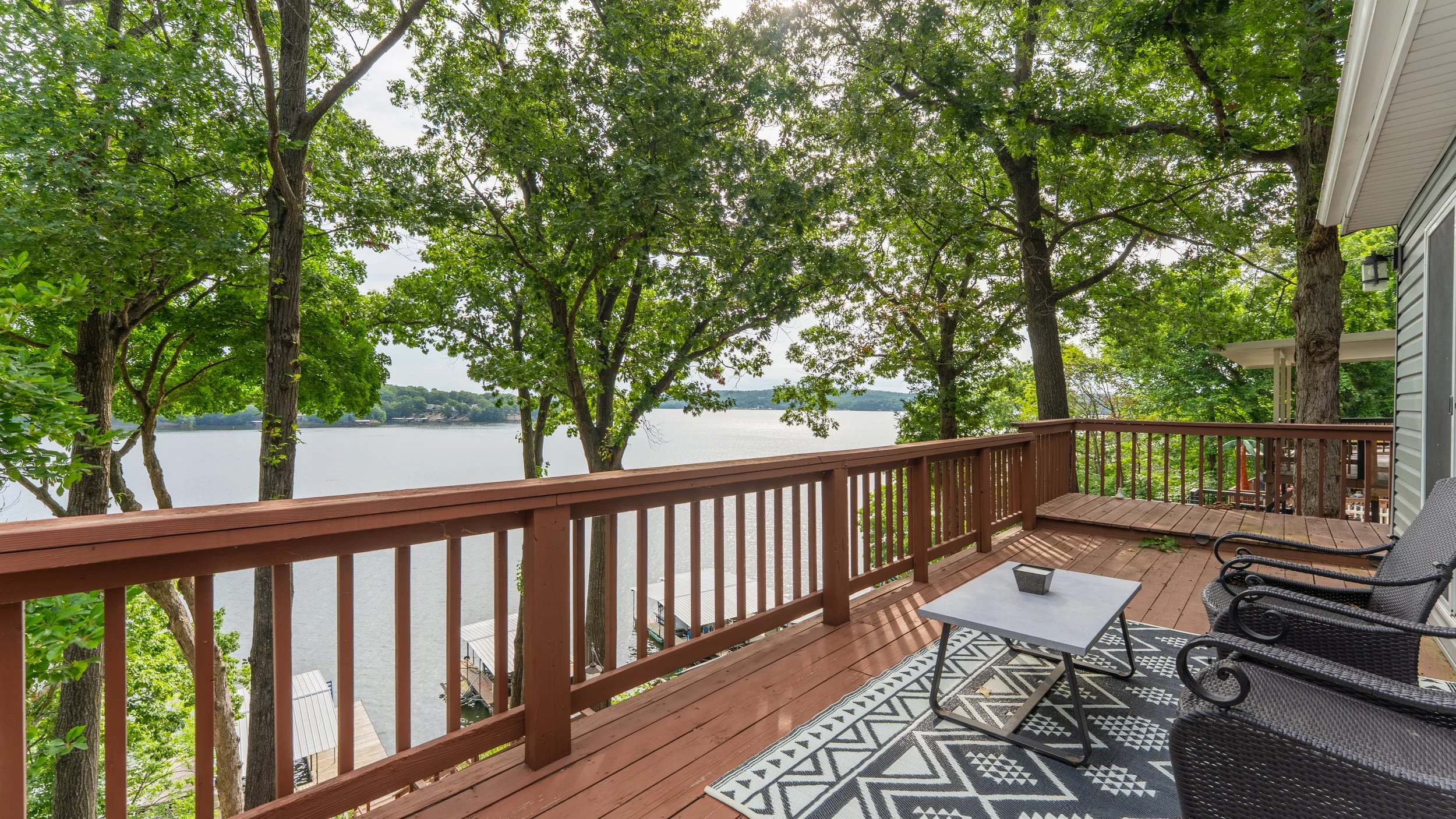This lakefront home offers a comfortable and spacious place to enjoy your stay at the Lake of the Ozarks. With thoughtful sleeping arrangements, inviting living spaces, and multiple outdoor areas overlooking the water, the home is designed for both relaxing and spending quality time together.